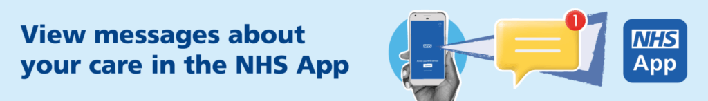 We can now send you messages about your care via the NHS app, rather than by SMS. This saves the NHS money. Download the NHS App and turn on notifications to see the messages.